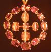 I'm posting a picture of a pendent built over a period 9 years, stones have been added or replaced to the finished item shown here, at least 4 different appraisers have viewed these stones at different times & noted that they are good quality stones with good color change overall. the pendent is 24.5cts total, 15cts on the circle & 9cts of cats-eye, alex, in the center, the diameter is 1.5" in 14kt white gold. The pics show in daylight, with 2 candles in a dark room, & under UV light to show a bright red shine from the stones. Appraisal is very good, any comments appreciated-Steve...